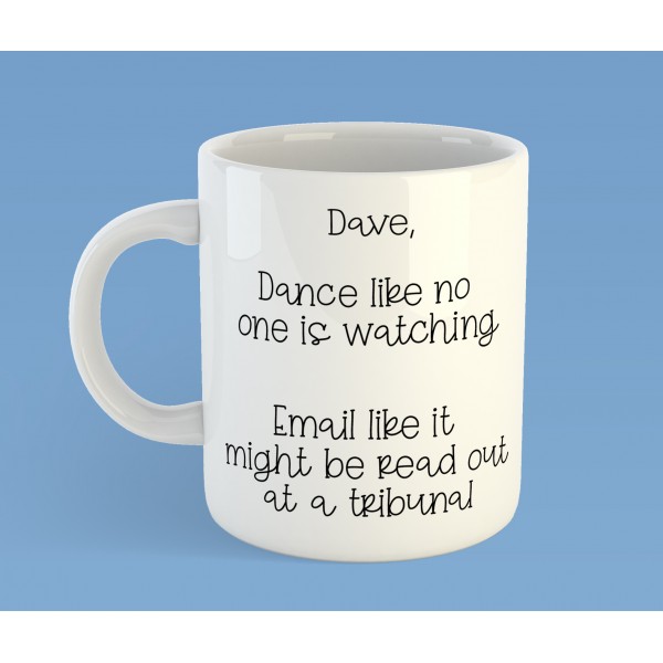 Tags: Dance Like Nobody's Watching, Email Like Read Out Tribunal, Lawyer Joke Funny Coffee Mug, Human Resources Mug, Paralegal Mug, Solicitor Gift, HR gift mug, personalised human resources mug, office worker gift, Funny Human Resources gift, mug for HR manager, GDPR gift, hr career gift. HR Gift mug
