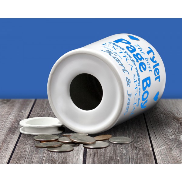 Made from bright white ceramic, these moneyboxes have your details sublimated directly onto the surface through a heat process which prevents fading. They can be washed in very hot water but please do not scour the surface as this will cause scratching.