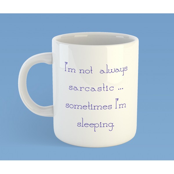 Love sarcasm, let everyone know it with this mug. The full quote says, 'I'm not always sarcastic... sometimes I'm sleeping' with a modern, very readable font, printed on both sides.